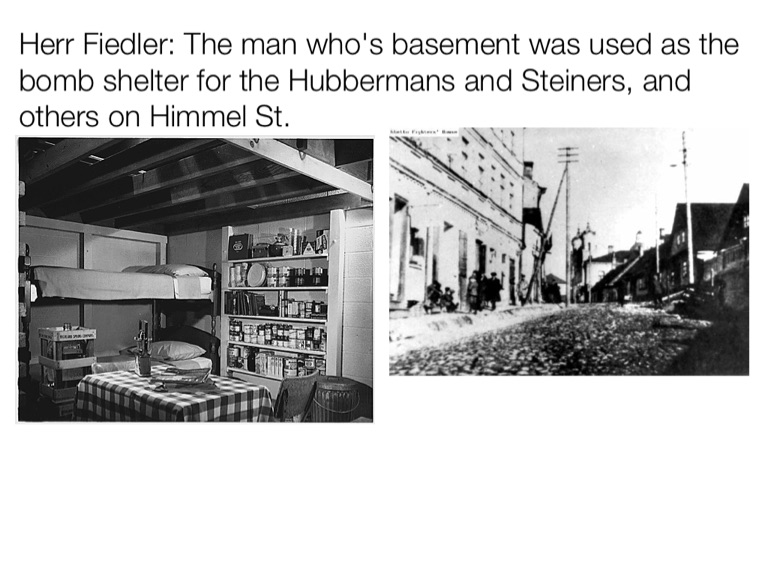 Herr Fiedler: The man who's basement was used as the bomb shelter for the Hubbermans and Steiners, and others on Himmel St.