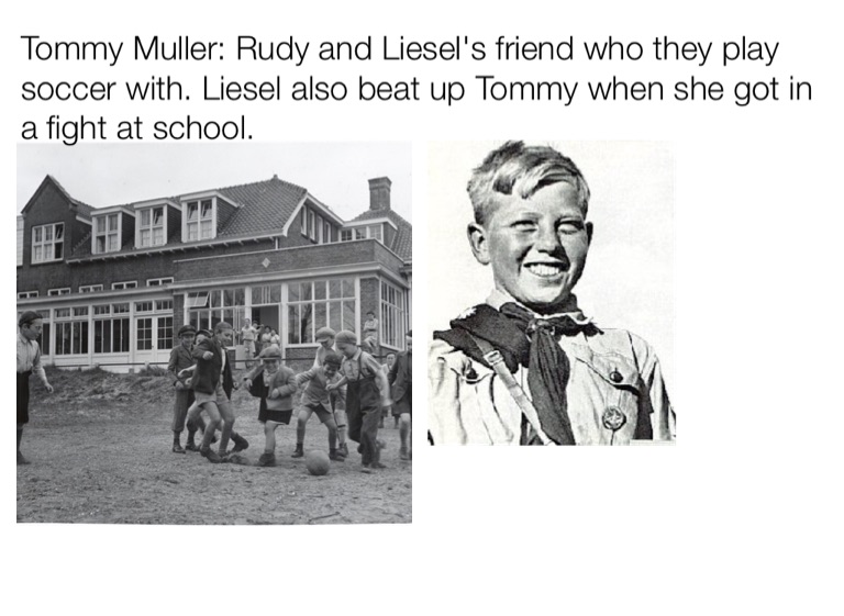 Tommy Muller: Rudy and Liesel's friend who they play soccer with. Liesel also beat up Tommy when she got in a fight at school.