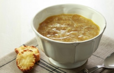 Soupe à l'oignon is a very common type of soup in France. This soup contain onions and beef stock, with croutons and cheese on top of it .