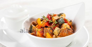 Ratatouille is a famous dish in France. It is a mixture of vegetables including eggplants, zucchini, tomatoes, and onions. Can be served hot and cold.