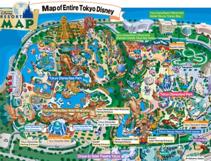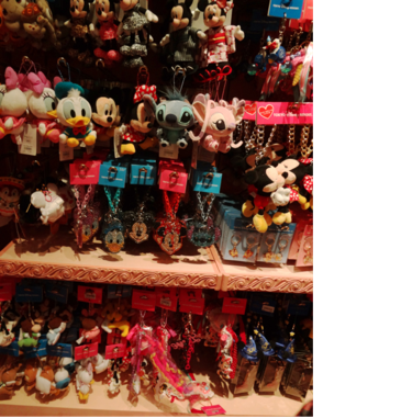 The images below the castle are the things that are interesting to me. The merchandise has a lot of things including Mickey Mouse and Stitch. The map of the entire area is huge and there are tons of rides. Like in California there is a "Small World"