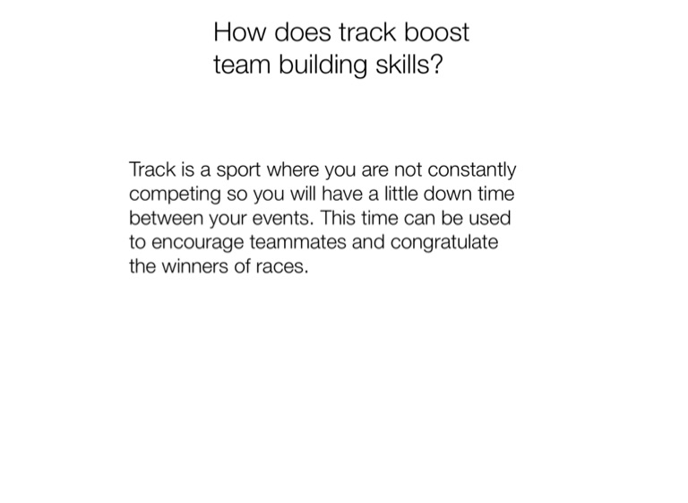 Track is a sport where you are not constantly competing so you will have a little down time between your events. This time can be used to encourage teammates and congratulate the winners of races.