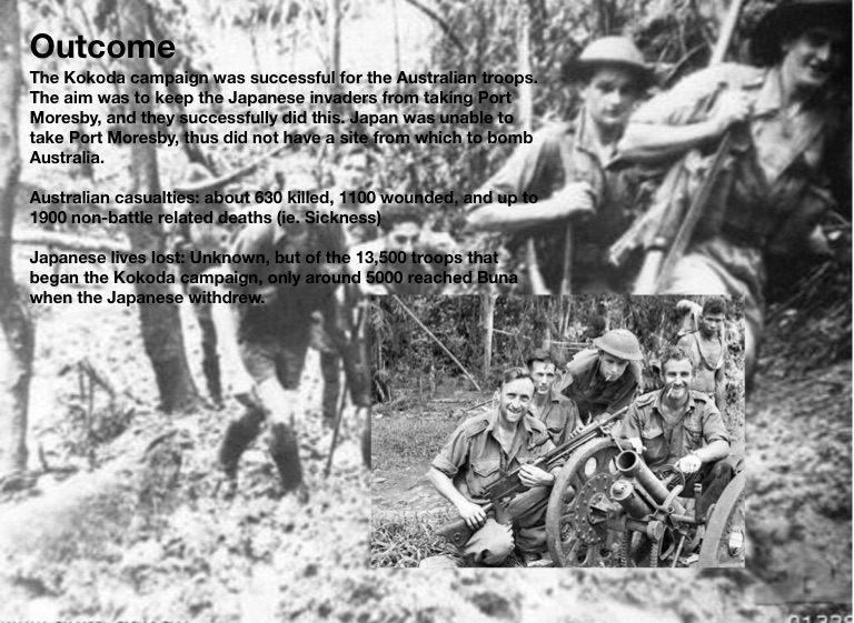 The Kokoda campaign was successful for the Australian troops. The aim was to keep the Japanese invaders from taking Port Moresby, and they successfully did this. Japan was unable to take Port Moresby, thus did not have a site from which to bomb Australia.