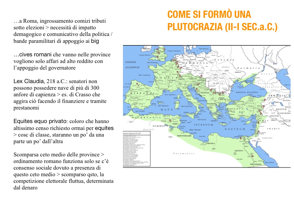 Scomparsa ceto medio delle province > ordinamento romano funziona solo se c’è consenso sociale dovuto a presenza di questo ceto medio > scomparso qsto, la competizione elettorale fluttua, determinata dal denaro