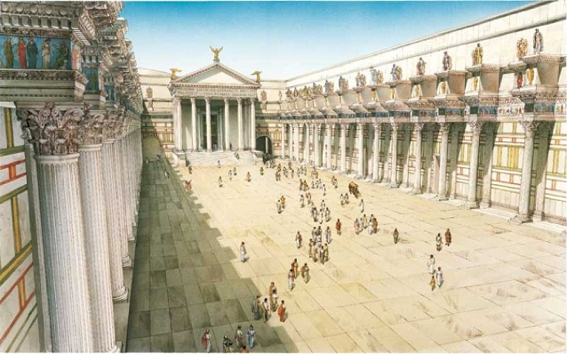 Sequenza delle statue nel foro di Augusto > posizione della sua statua tra Romolo (virtus) ed Enea (pietas)