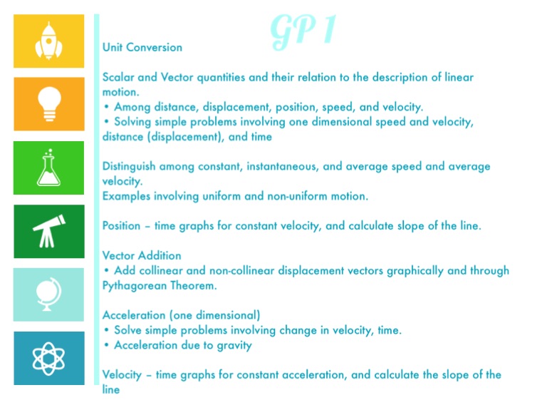 • Solving simple problems involving one dimensional speed and velocity, distance (displacement), and time