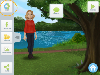 If you are unsatisfied with your Tellagami, you can press the "reset" button in the top left corner to restart.