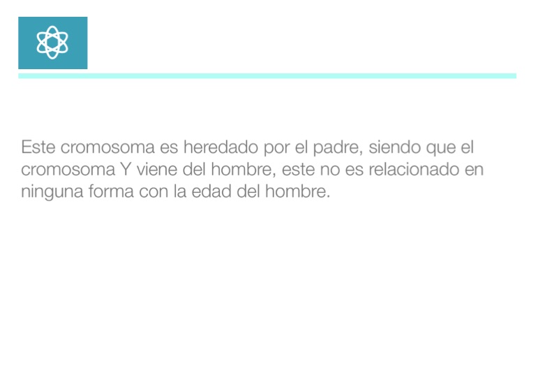 Este cromosoma es heredado por el padre, siendo que el cromosoma Y viene del hombre, este no es relacionado en ninguna forma con la edad del hombre.