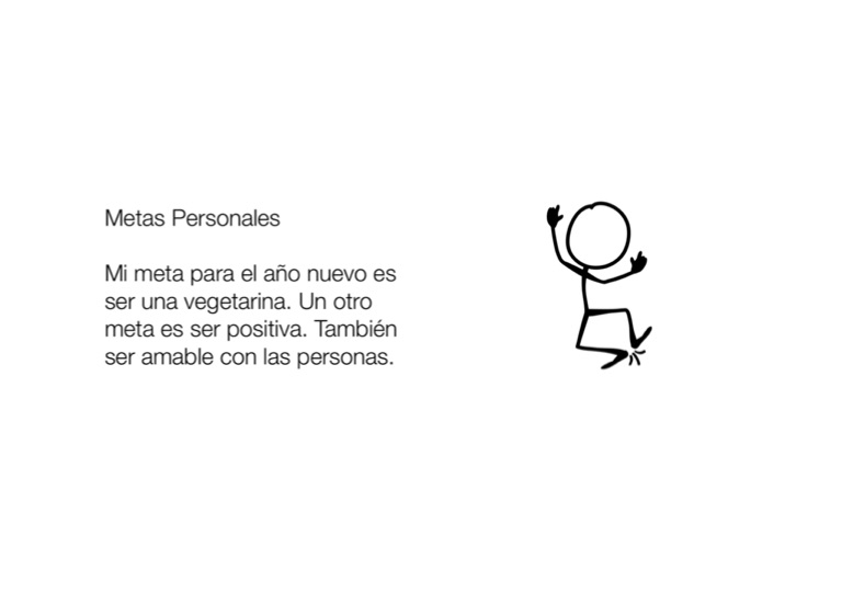 Mi meta para el año nuevo es ser una vegetarina. Un otro meta es ser positiva. También ser amable con las personas.
