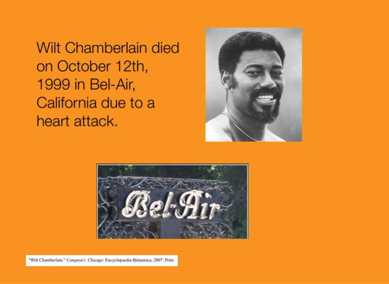 Wilt Chamberlain died on October 12th, 1999 in Bel-Air, California due to a heart attack.