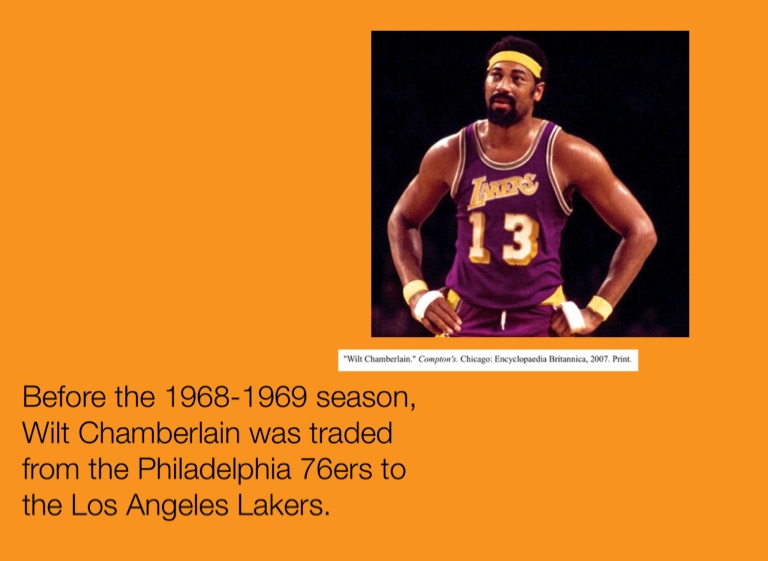 Before the 1968-1969 season, Wilt Chamberlain was traded from the Philadelphia 76ers to the Los Angeles Lakers.