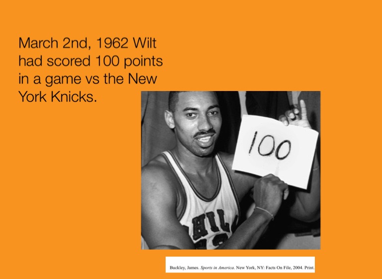 March 2nd, 1962 Wilt had scored 100 points in a game vs the New York Knicks.