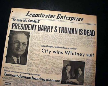 Truman died on December 26, 1972