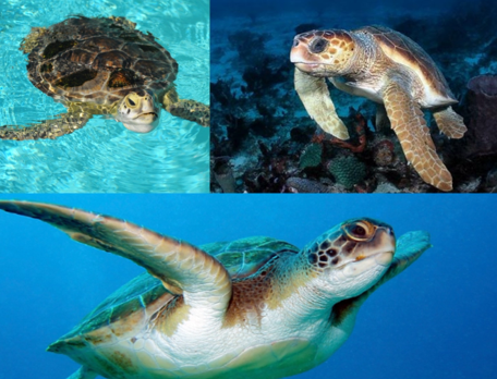These Turtles, being located in 7 different places are very popular! This Sea Turtle is the only kind not listed as endangered! They are typically 80-110 centimeters in height and weight 155-375 pounds!