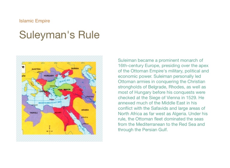 Suleiman became a prominent monarch of 16th-century Europe, presiding over the apex of the Ottoman Empire's military, political and economic power. Suleiman personally led Ottoman armies in conquering the Christian strongholds of Belgrade, Rhodes, as well as most of Hungary before his conquests were checked at the Siege of Vienna in 1529. He annexed much of the Middle East in his conflict with the Safavids and large areas of North Africa as far west as Algeria. Under his rule, the Ottoman fleet dominated the seas from the Mediterranean to the Red Sea and through the Persian Gulf.