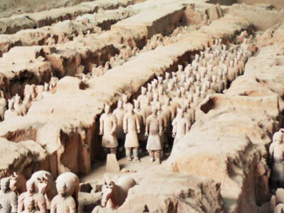 The Terra-Cotta Warriors. They were made in China, and they were made all different, all ancient, and all happy.