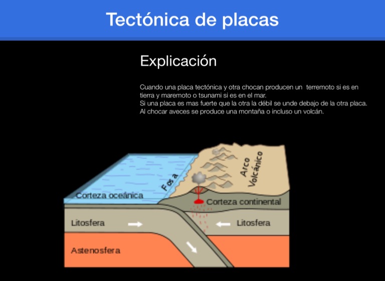 Cuando una placa tectónica y otra chocan producen un terremoto si es en tierra y maremoto o tsunami si es en el mar.