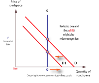 One solution is charging for road space. As seen in the diagram to the left this will reduce demand.