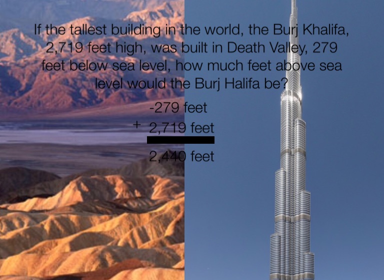 If the tallest building in the world, the Burj Khalifa, 2,719 feet high, was built in Death Valley, 279 feet below sea level, how much feet above sea level would the Burj Halifa be?