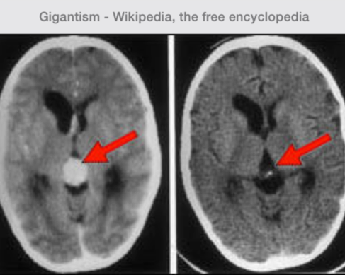 Almost, in all cases of gigantism, pituitary gland tumor is the cause. Pituitary gland is a pea-sized gland, positioned at the bottom of the brain. The gland is responsible for producing hormones which control various bodily functions.