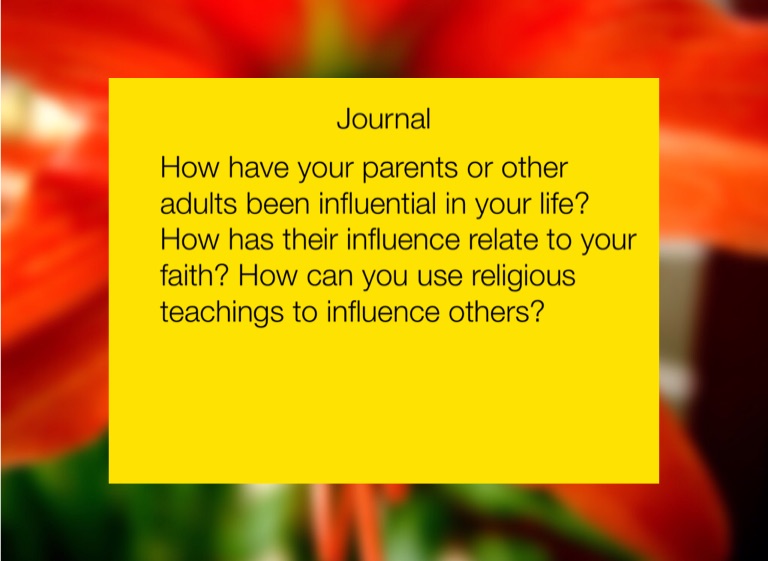 How have your parents or other adults been influential in your life? How has their influence relate to your faith? How can you use religious teachings to influence others?