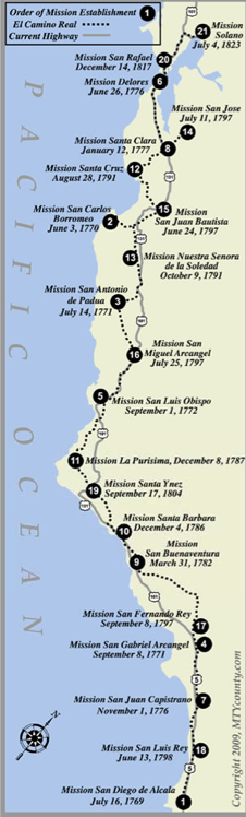 Portola Expedition of 1769-70 led to Spanish missionaries setting up 21 California Missions.