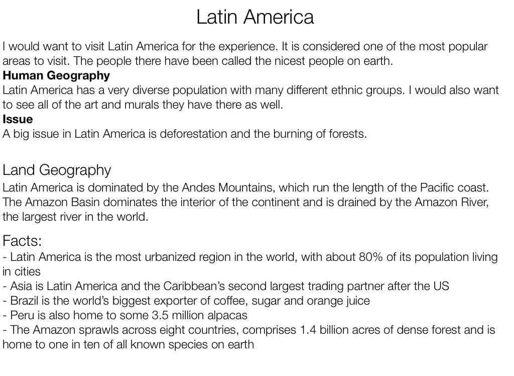 Latin America has a very diverse population with many different ethnic groups. I would also want to see all of the art and murals they have there as well.