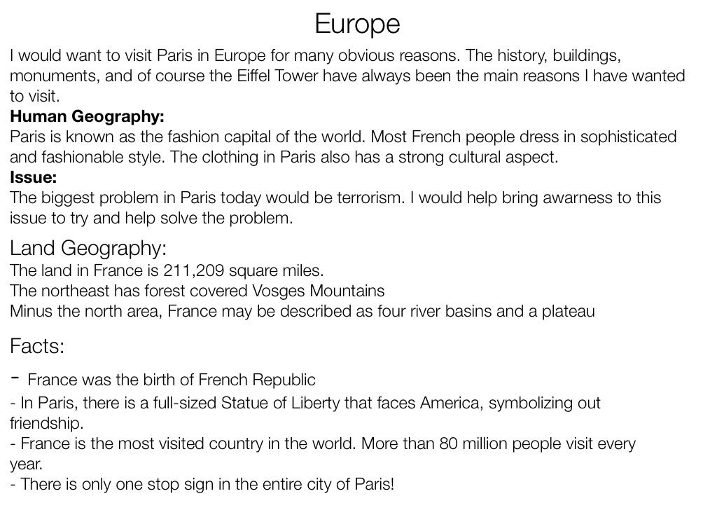 I would want to visit Paris in Europe for many obvious reasons. The history, buildings, monuments, and of course the Eiffel Tower have always been the main reasons I have wanted to visit.