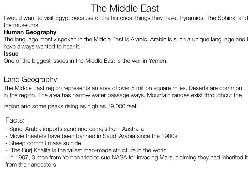 The language mostly spoken in the Middle East is Arabic. Arabic is such a unique language and I have always wanted to hear it.