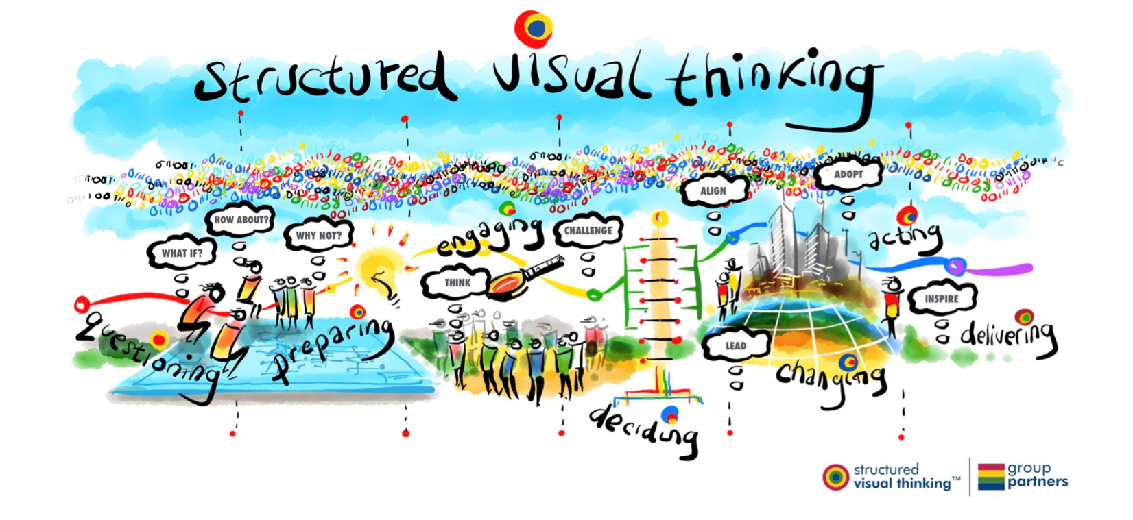 A short series of images that explains the basic idea behind Structured Visual Thinking™ from Group Partners.