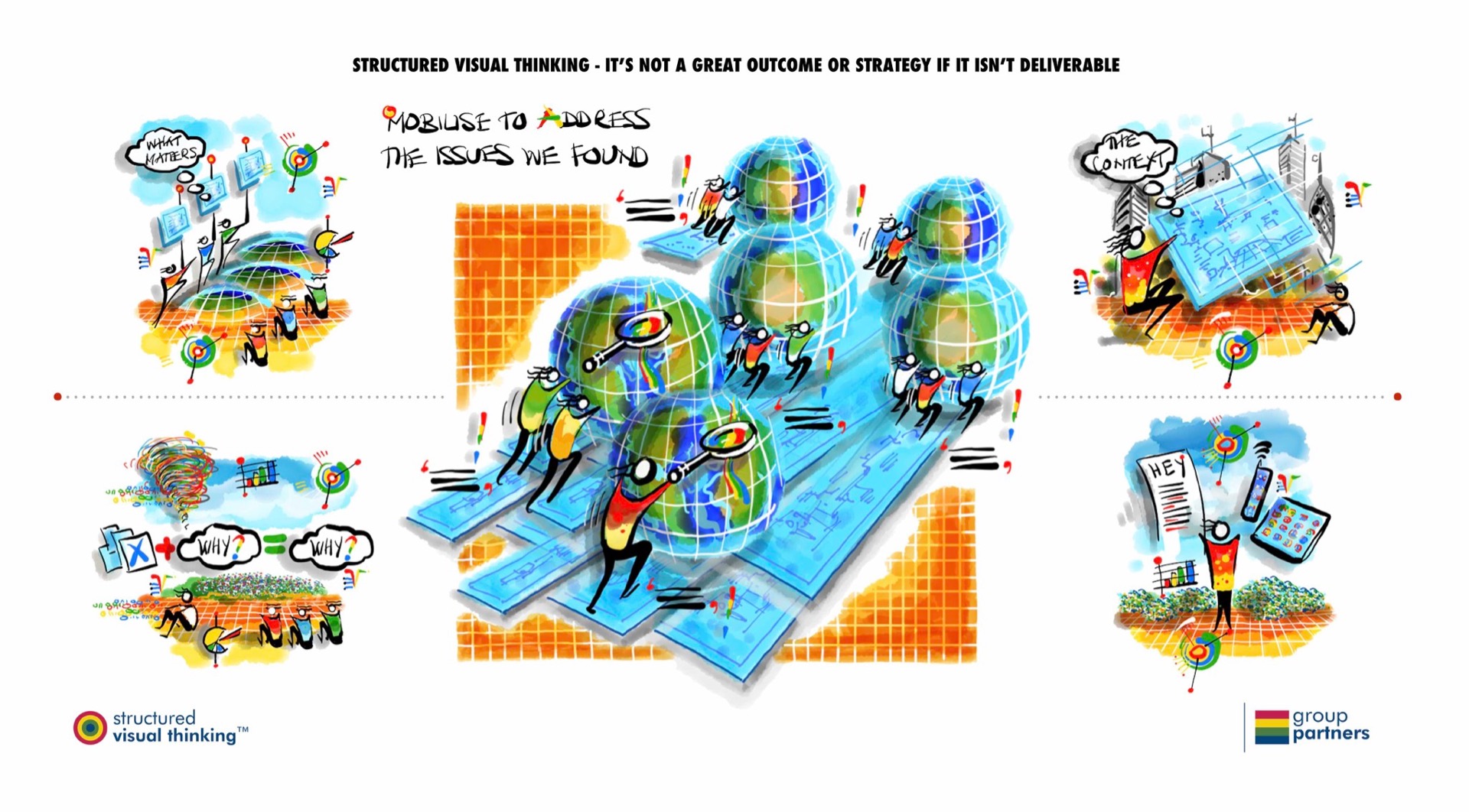 A short series of images that explains the basic idea behind Structured Visual Thinking™ from Group Partners.