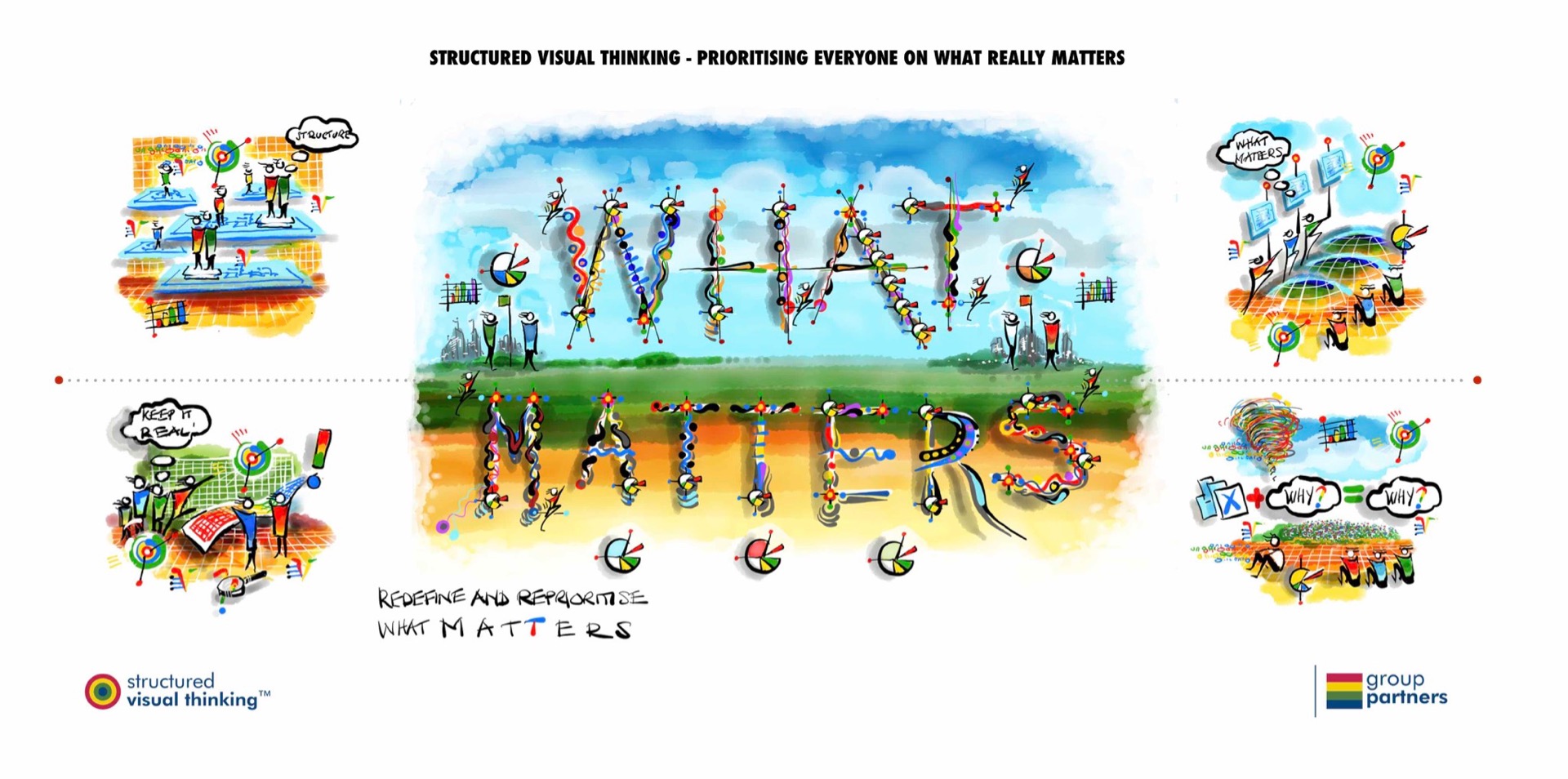 A short series of images that explains the basic idea behind Structured Visual Thinking™ from Group Partners.