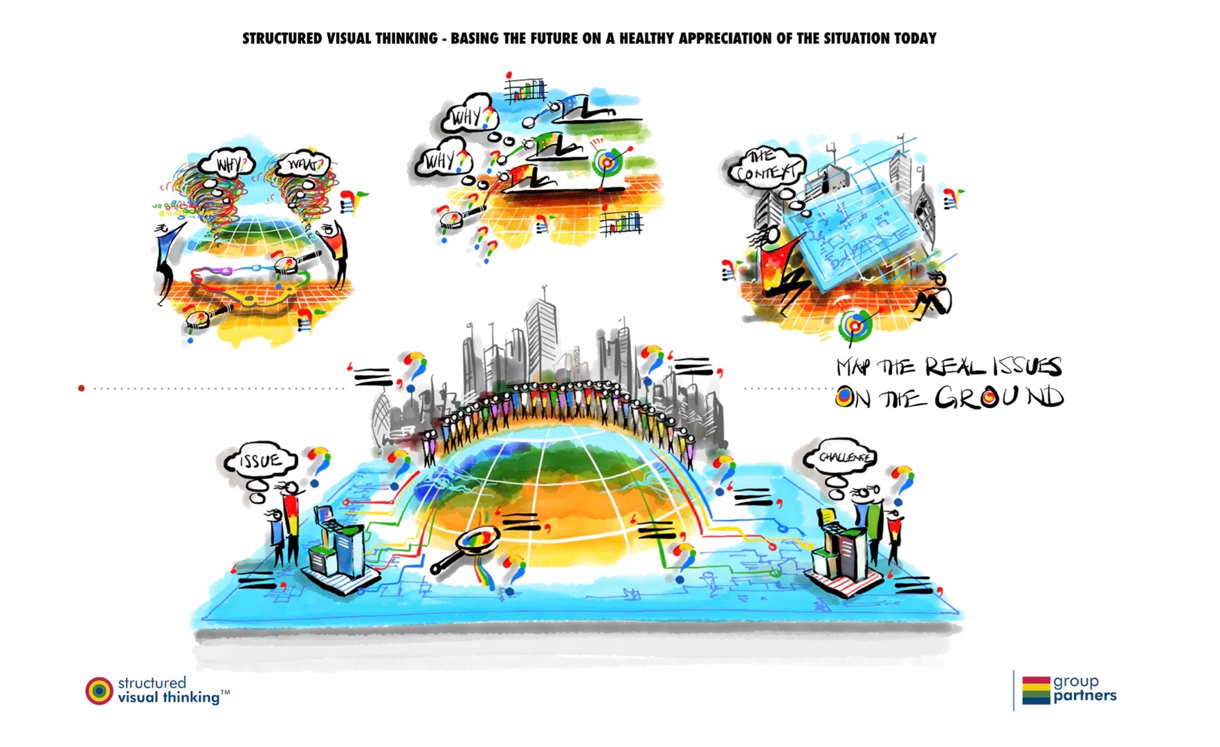 A short series of images that explains the basic idea behind Structured Visual Thinking™ from Group Partners.