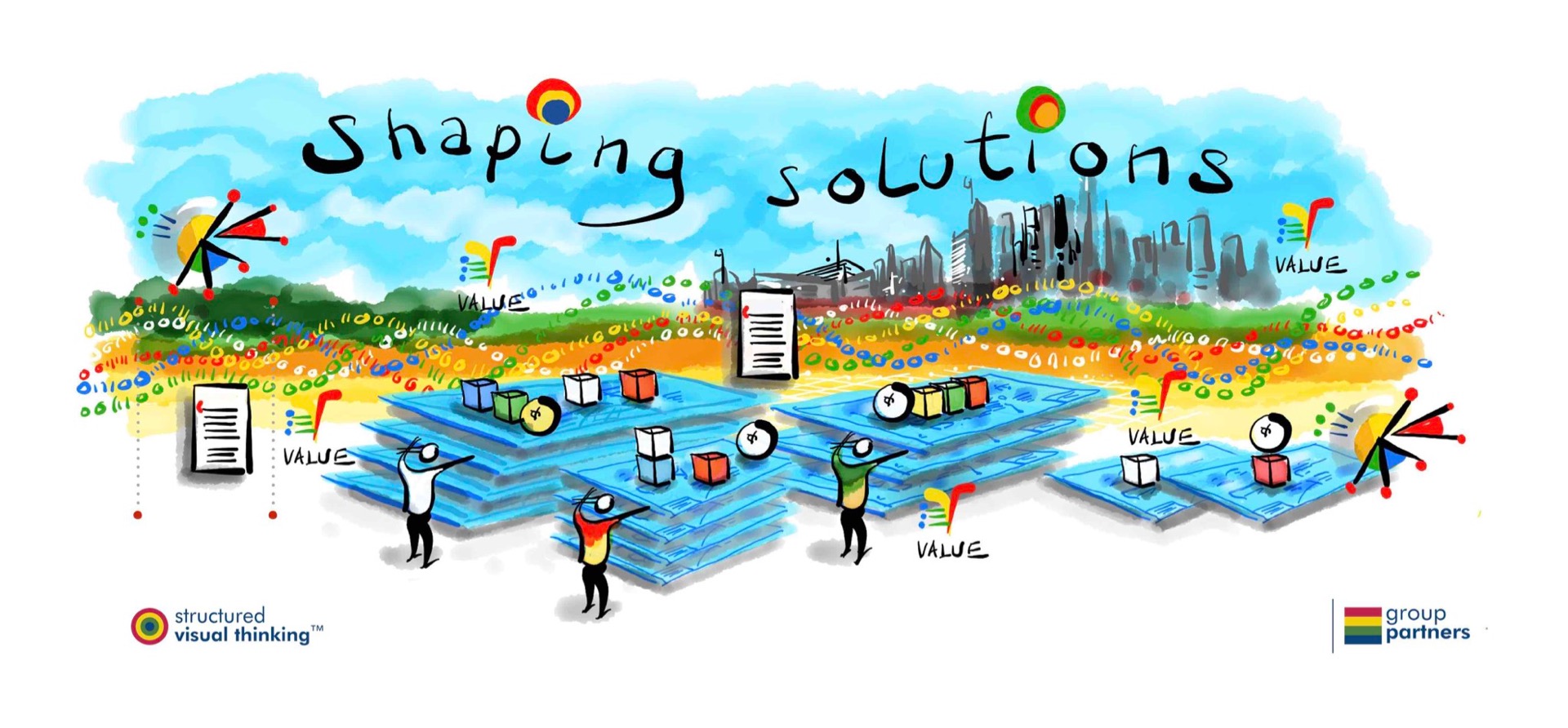 A short series of images that explains the basic idea behind Structured Visual Thinking™ from Group Partners.