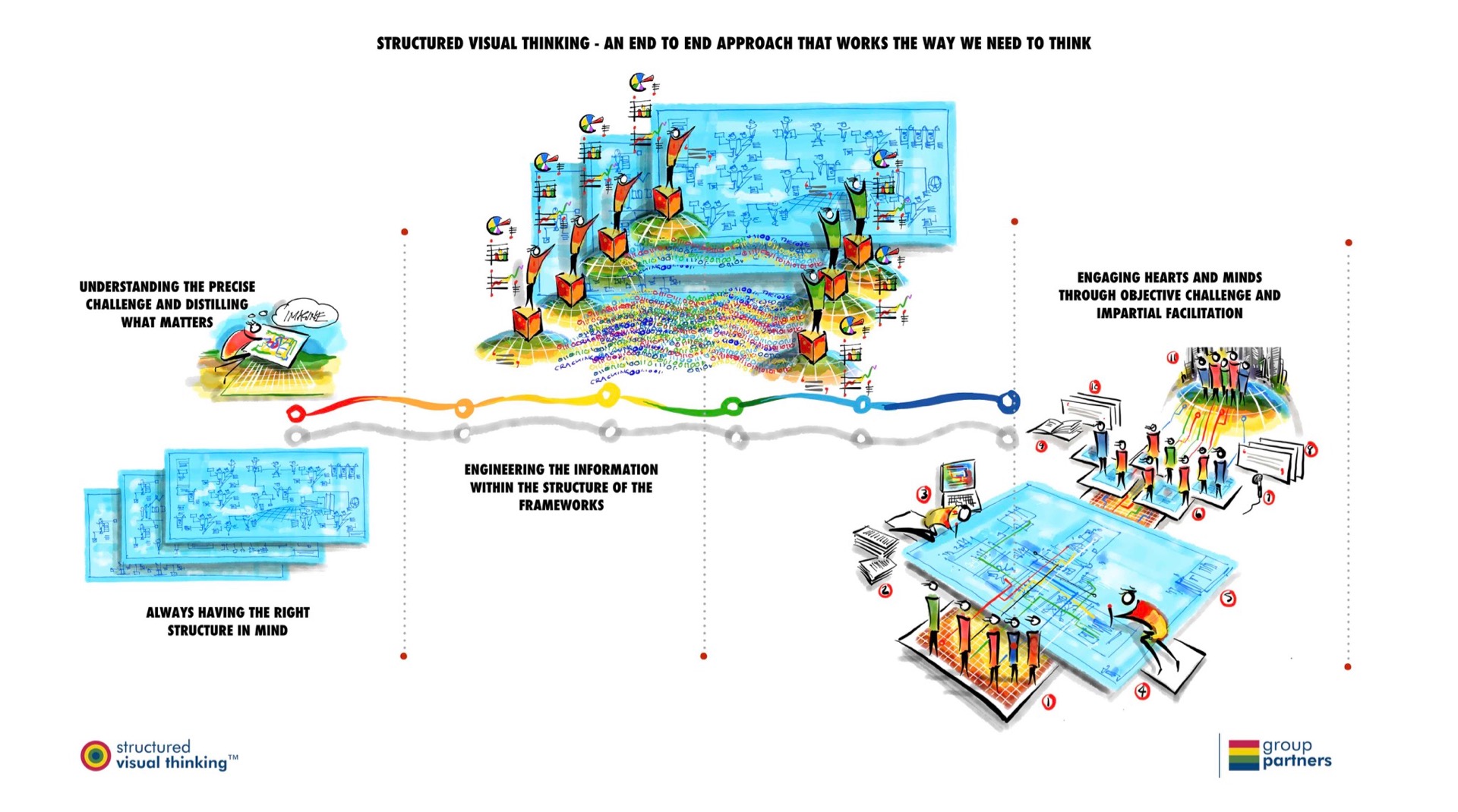 A short series of images that explains the basic idea behind Structured Visual Thinking™ from Group Partners.