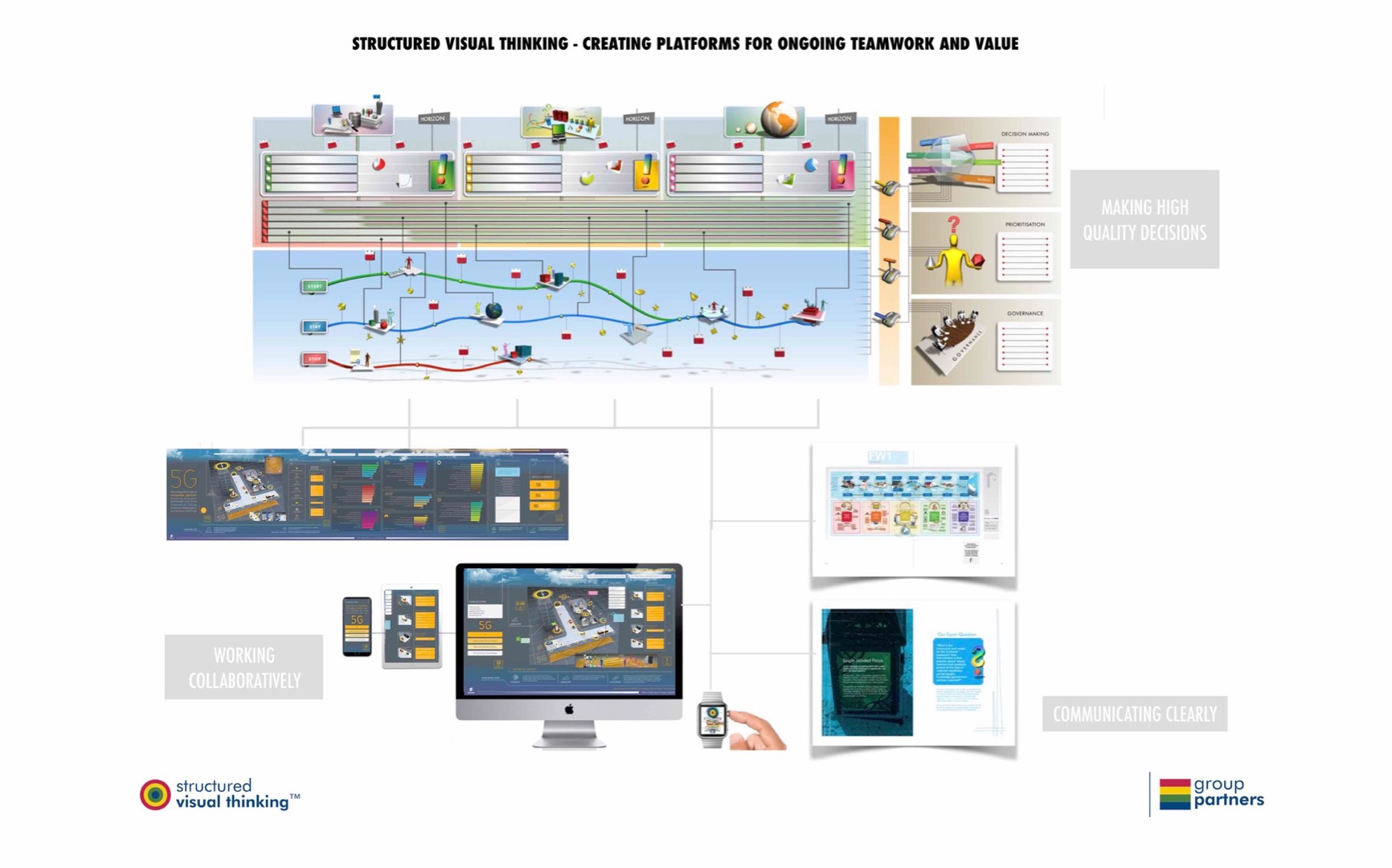 A short series of images that explains the basic idea behind Structured Visual Thinking™ from Group Partners.