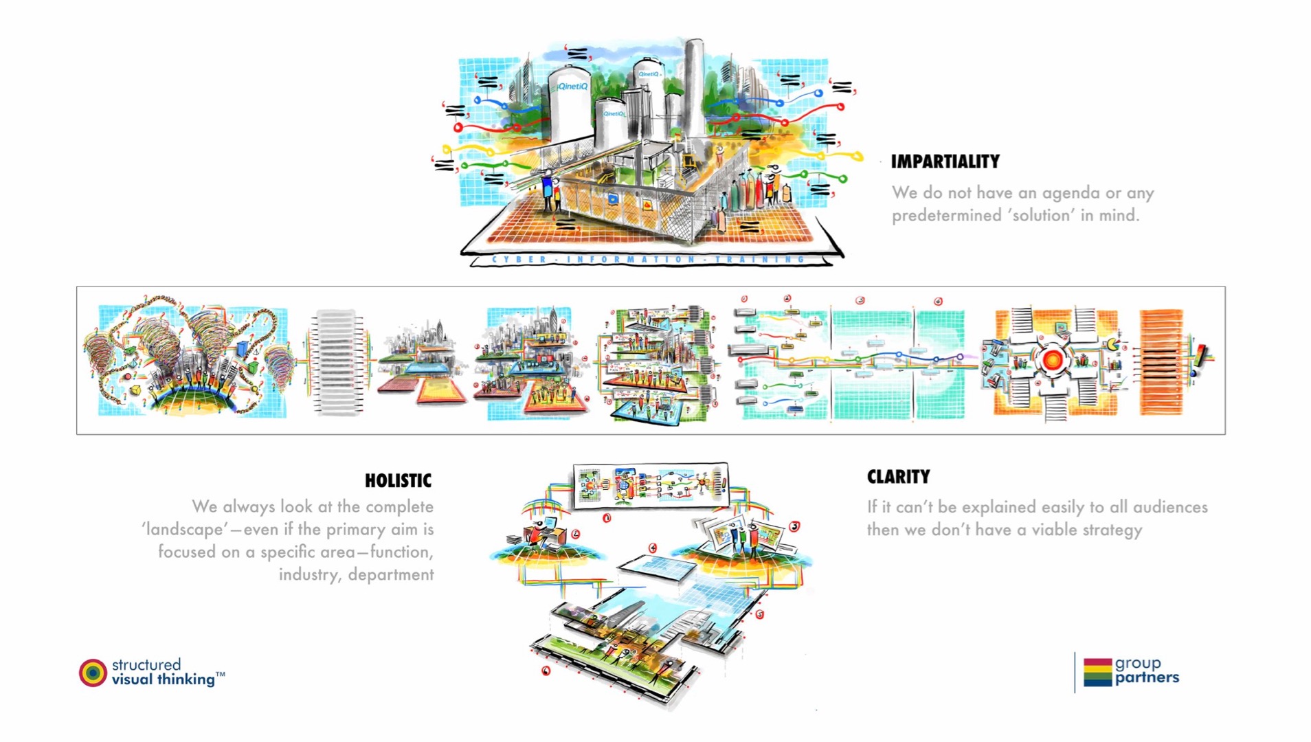 A short series of images that explains the basic idea behind Structured Visual Thinking™ from Group Partners.