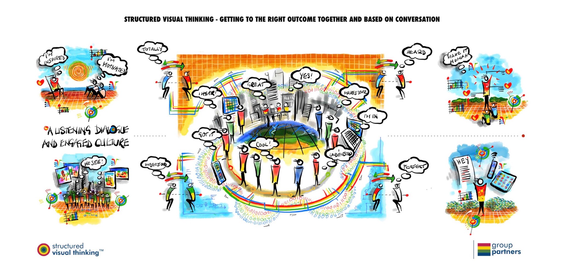 A short series of images that explains the basic idea behind Structured Visual Thinking™ from Group Partners.