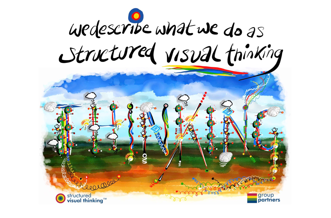 A short series of images that explains the basic idea behind Structured Visual Thinking™ from Group Partners.