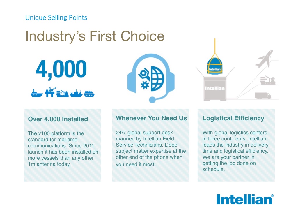 With global logistics centers in three continents, Intellian leads the industry in delivery time and logistical efficiency. We are your partner in getting the job done on schedule.