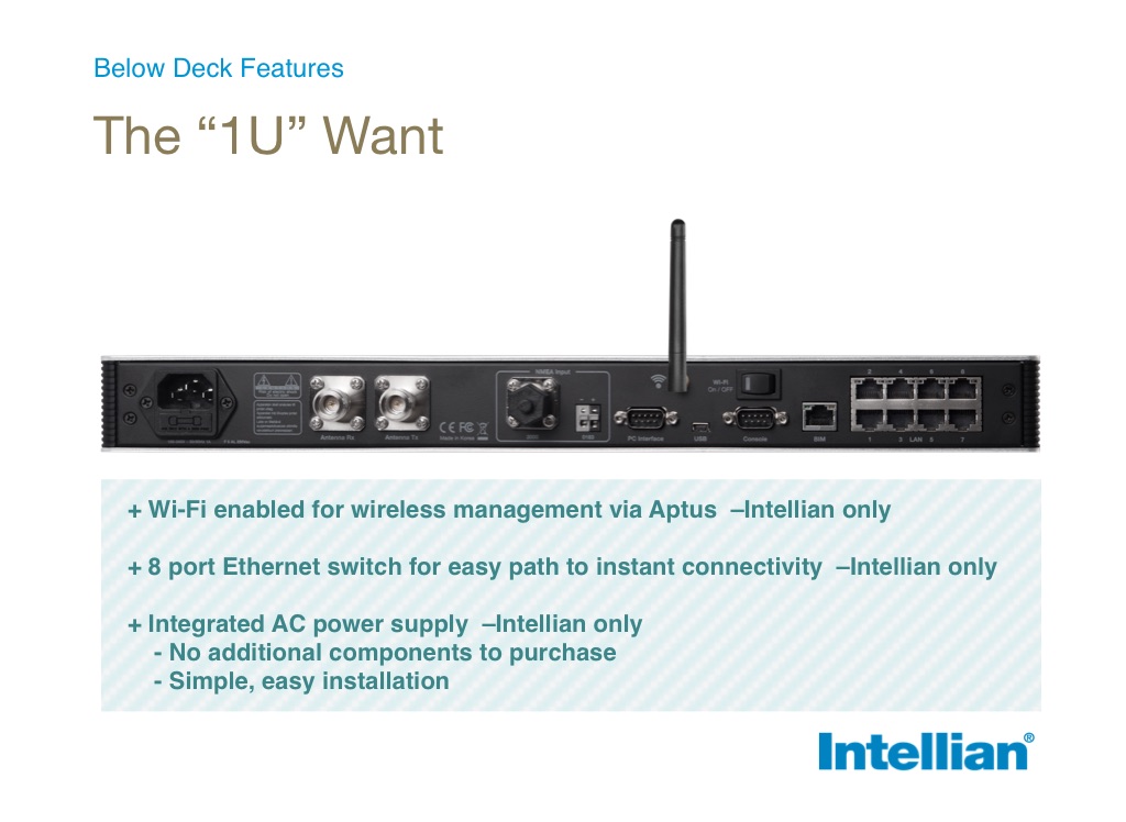 + Wi-Fi enabled for wireless management via Aptus –Intellian only