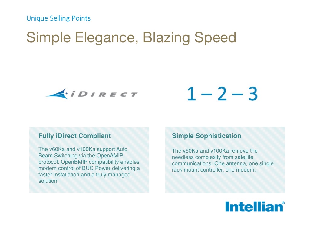 The v60Ka and v100Ka remove the needless complexity from satellite communications. One antenna, one single rack mount controller, one modem.