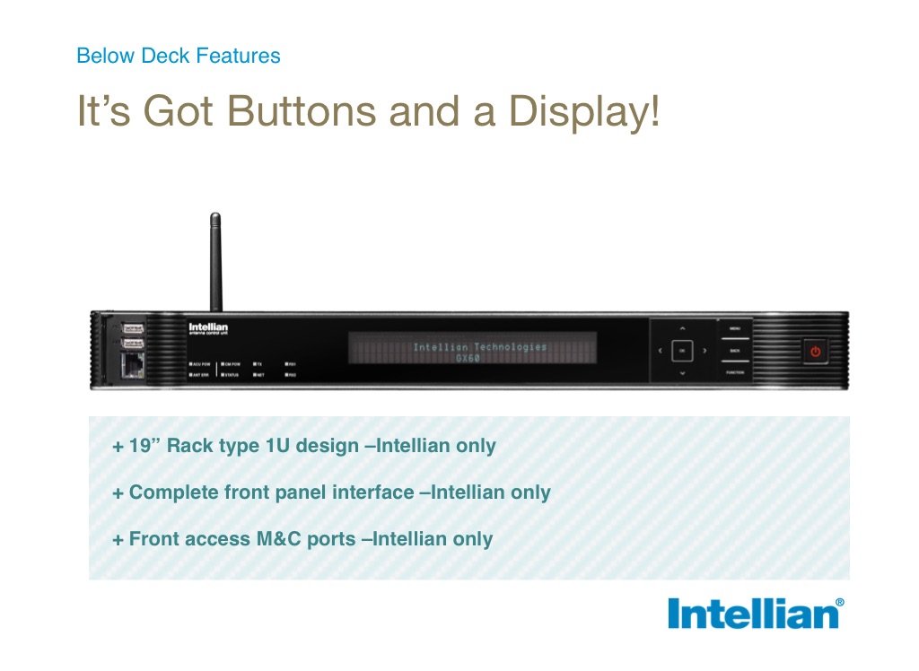 + Complete front panel interface –Intellian only