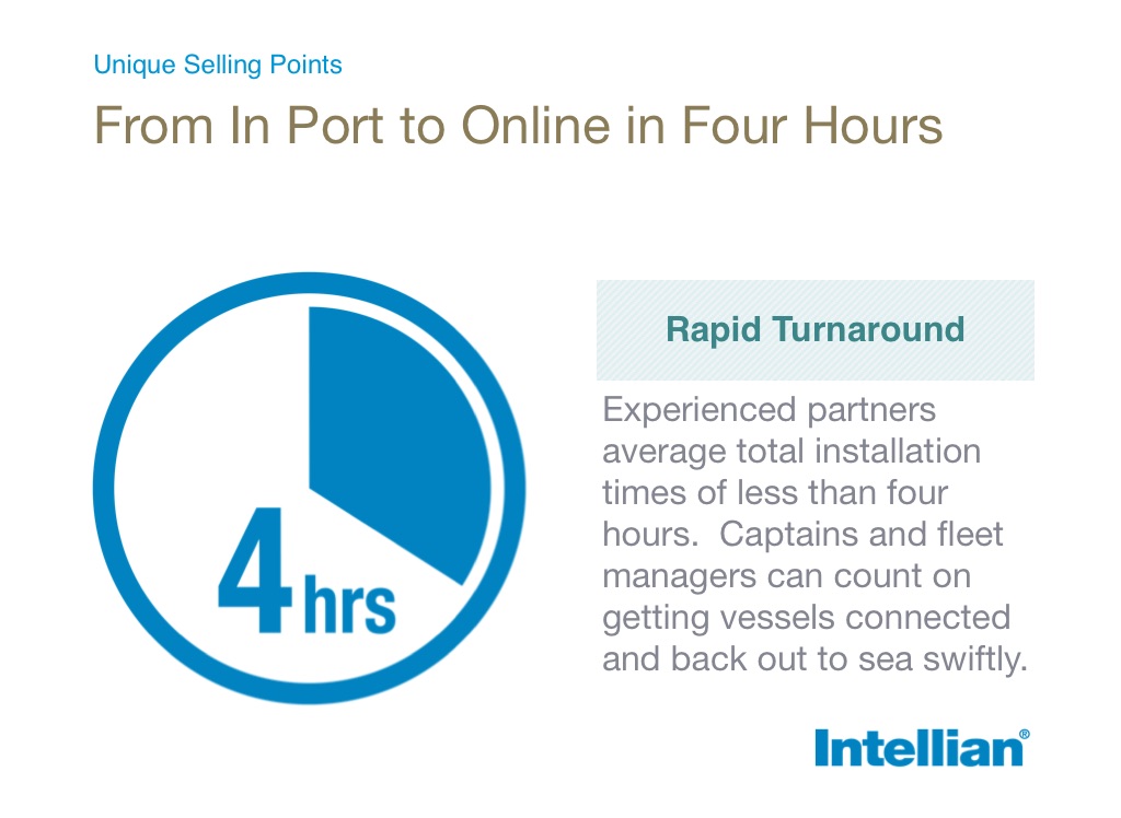 Experienced partners average total installation times of less than four hours. Captains and fleet managers can count on getting vessels connected and back out to sea swiftly.