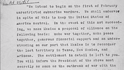 Germany sent a proposal to Mexico stating that they wanted to go into an alliance. This would be in case America entered the war.