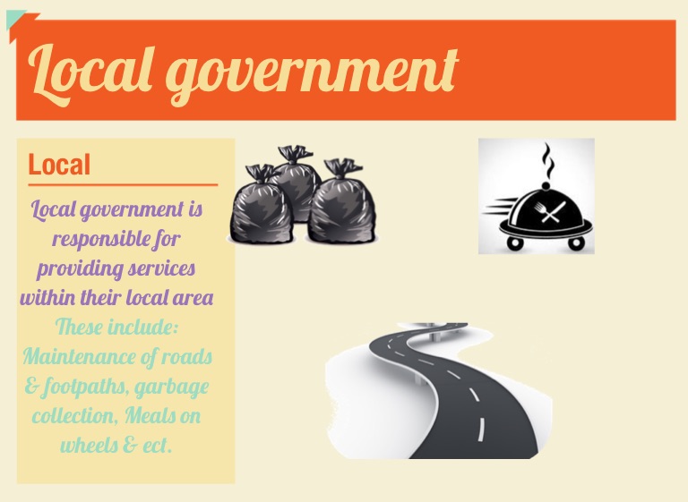 Maintenance of roads & footpaths, garbage collection, Meals on wheels & ect.