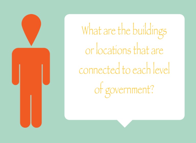 What are the buildings or locations that are connected to each level of government?