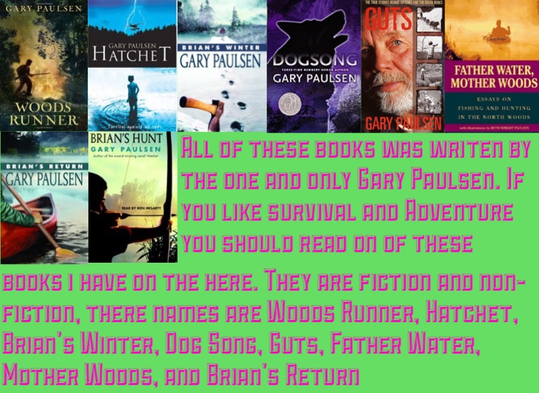 All of these books was writen by the one and only Gary Paulsen. If you like survival and Adventure you should read on of these