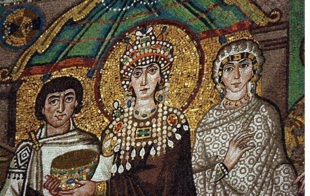 La reina Teodora representando al Imperio Bizantino, Basilica de San Vitale en Ravenna.