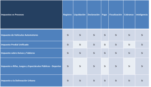 El objetivo del proyecto será la implementación de SAP Tax & Revenue Management para el recaudo de los siguientes impuestos